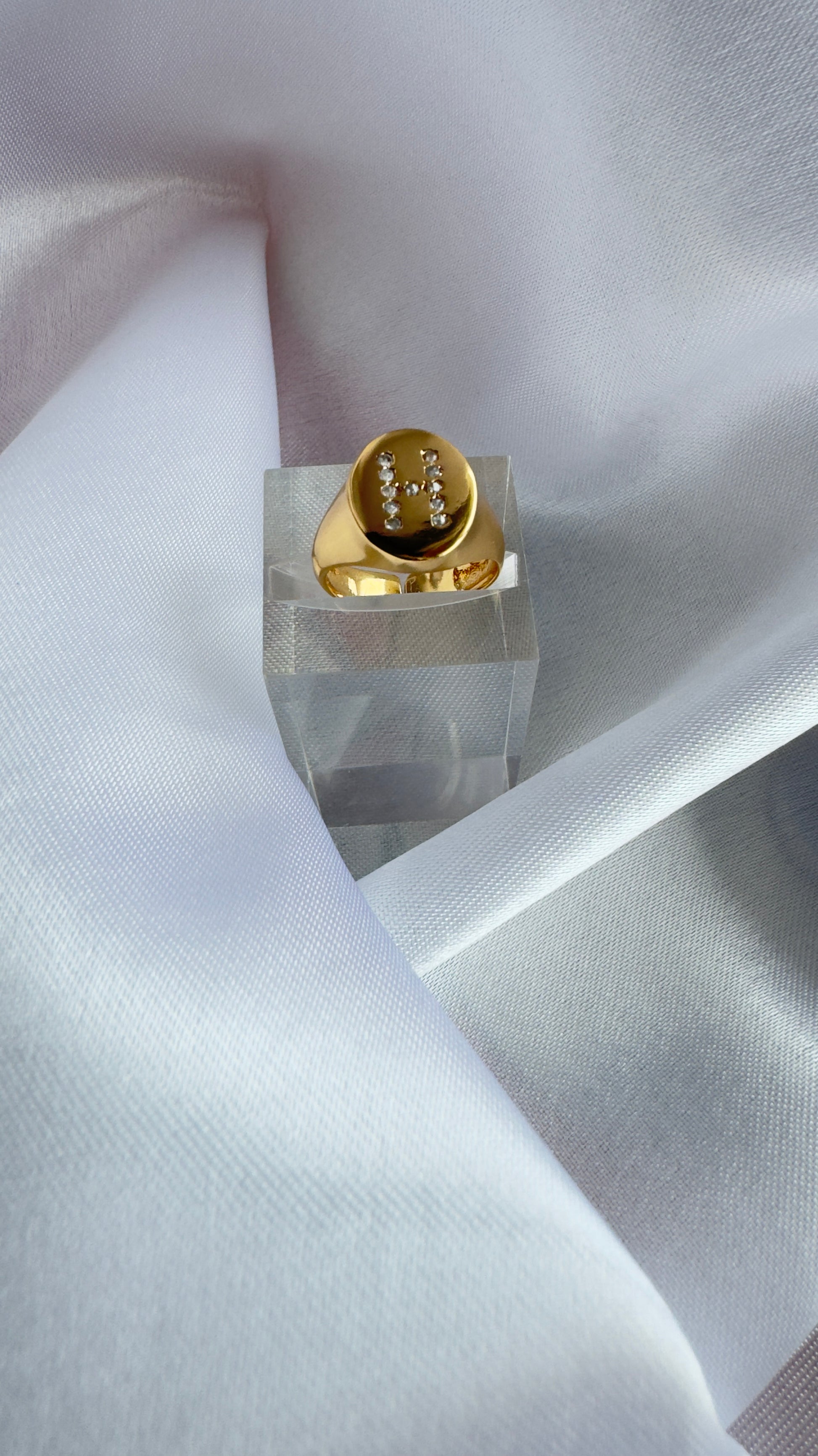 Anel para mindinho com letra H e Zircônias