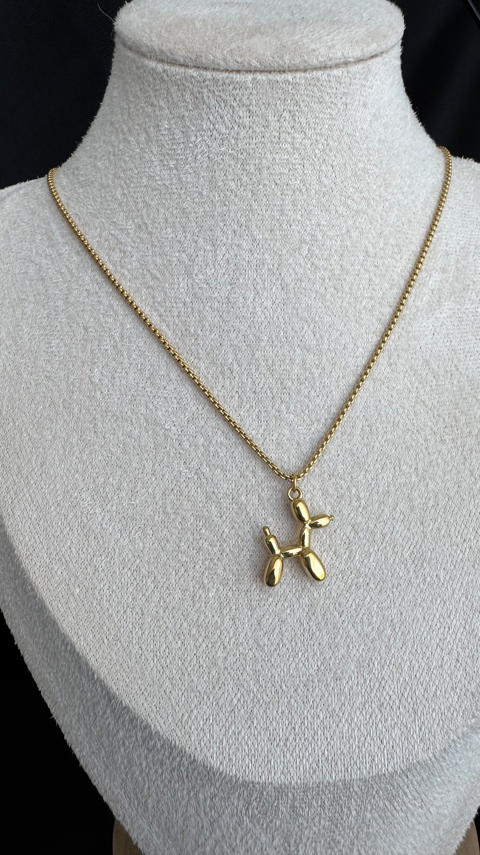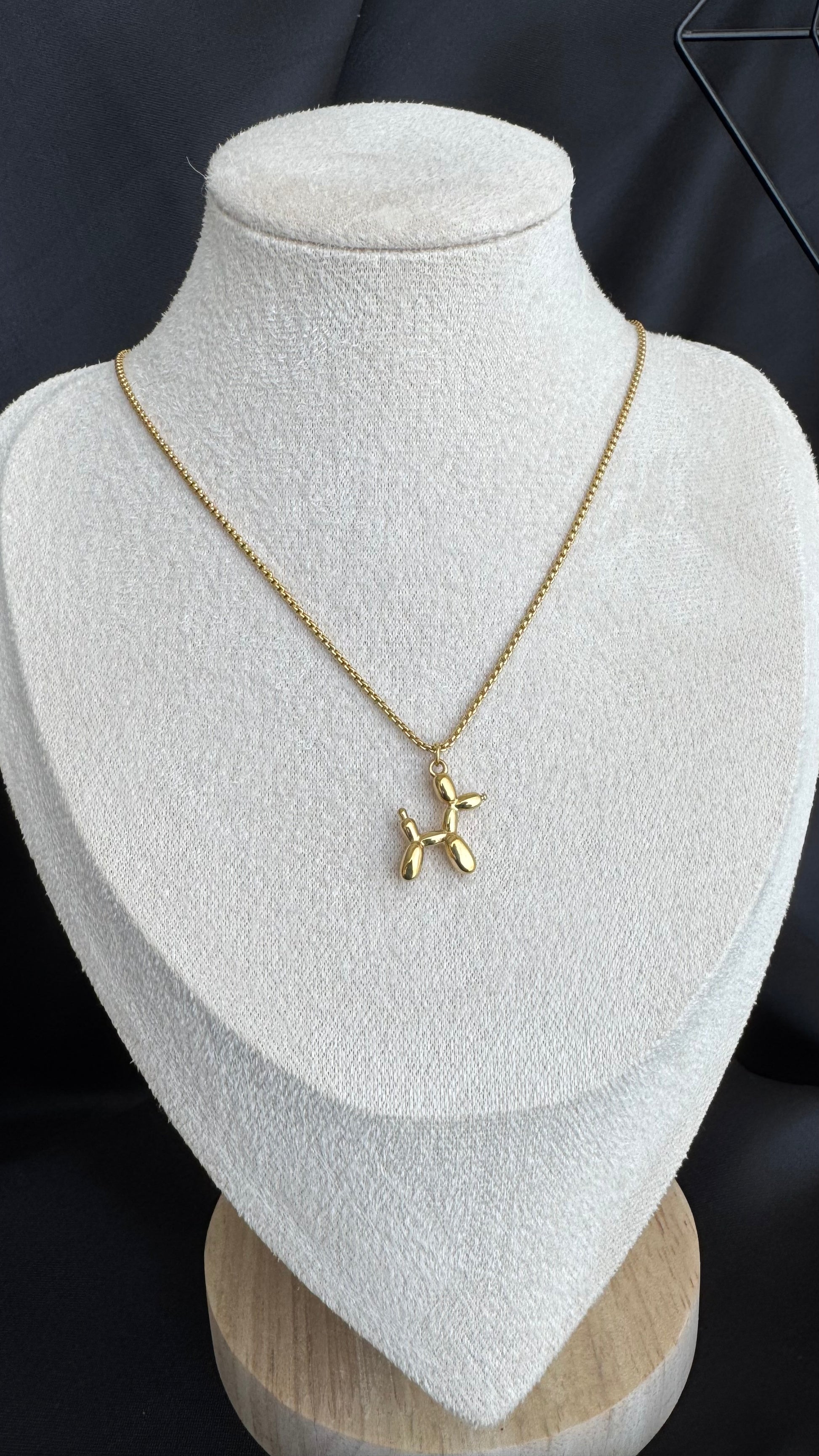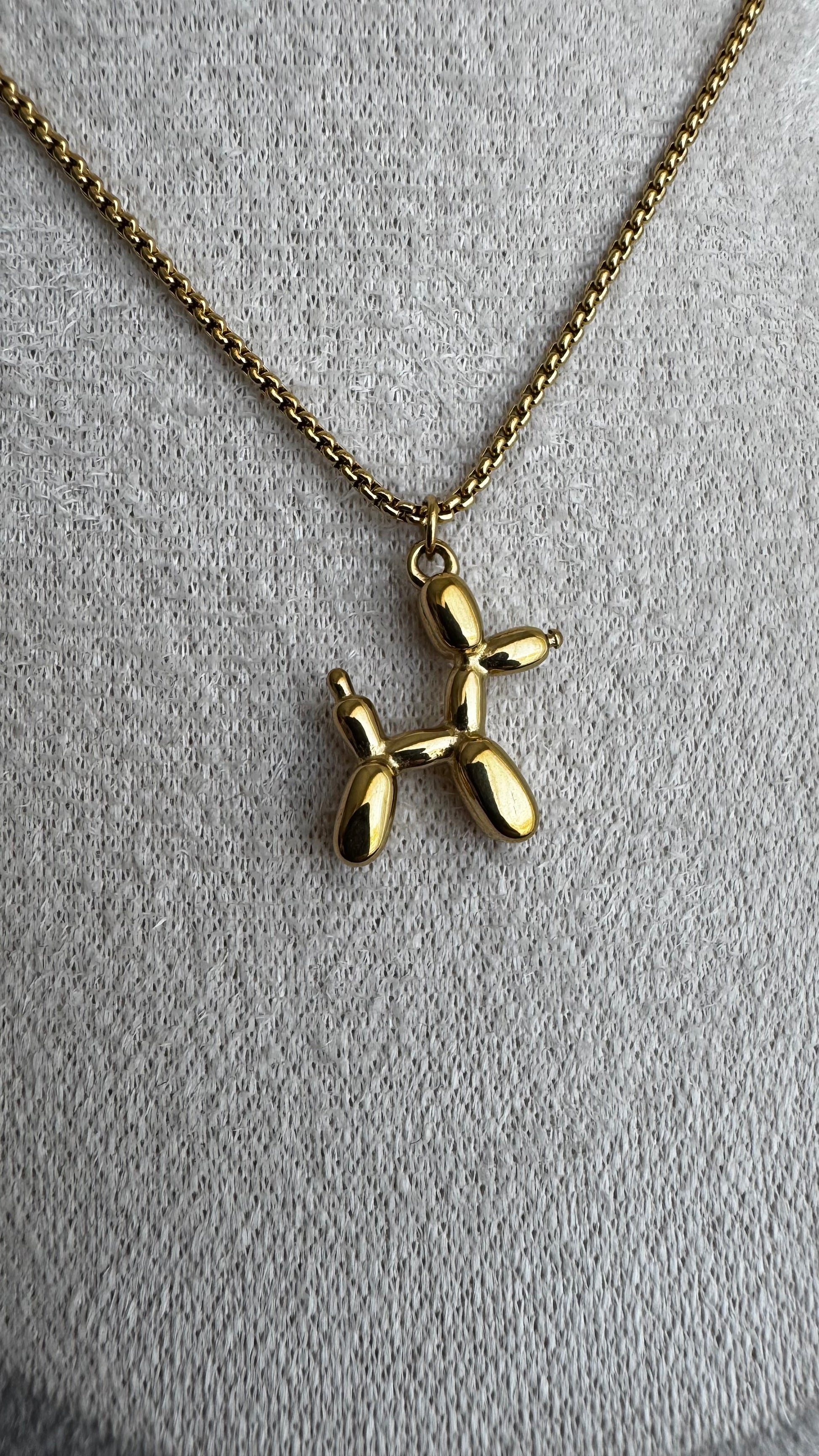 Colar Bexiga em Formato de Cachorro em Aço e banho Dourado