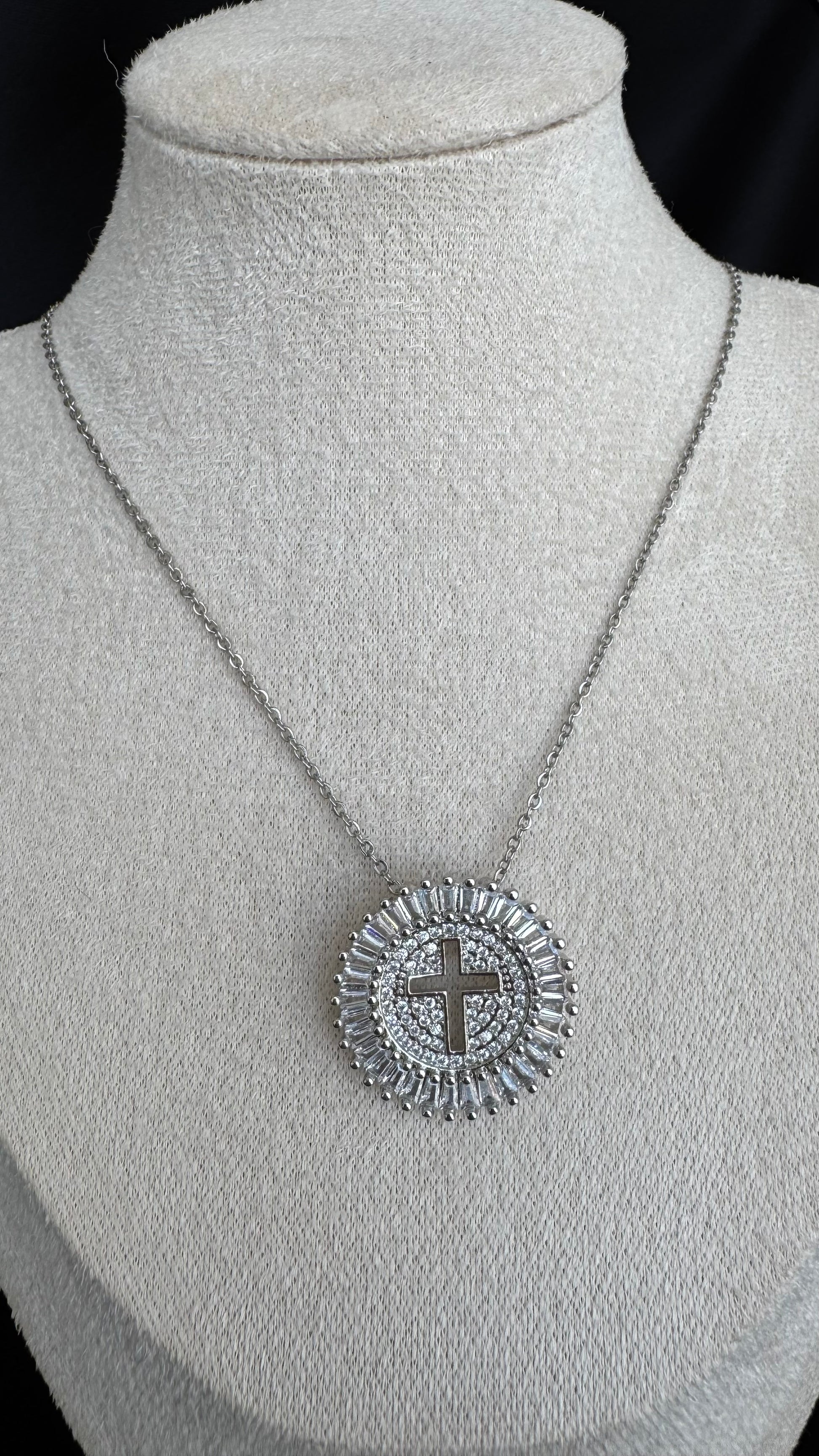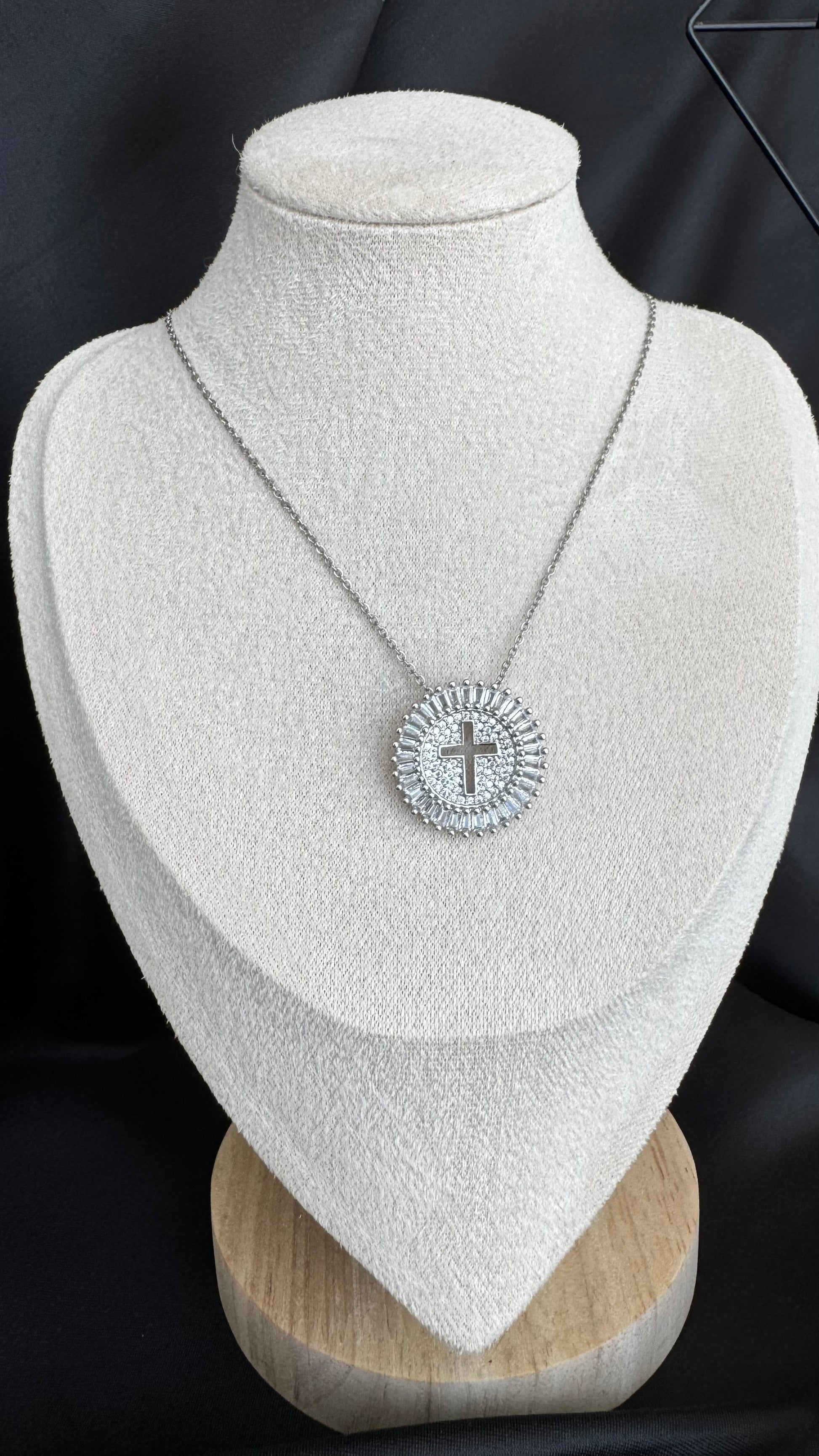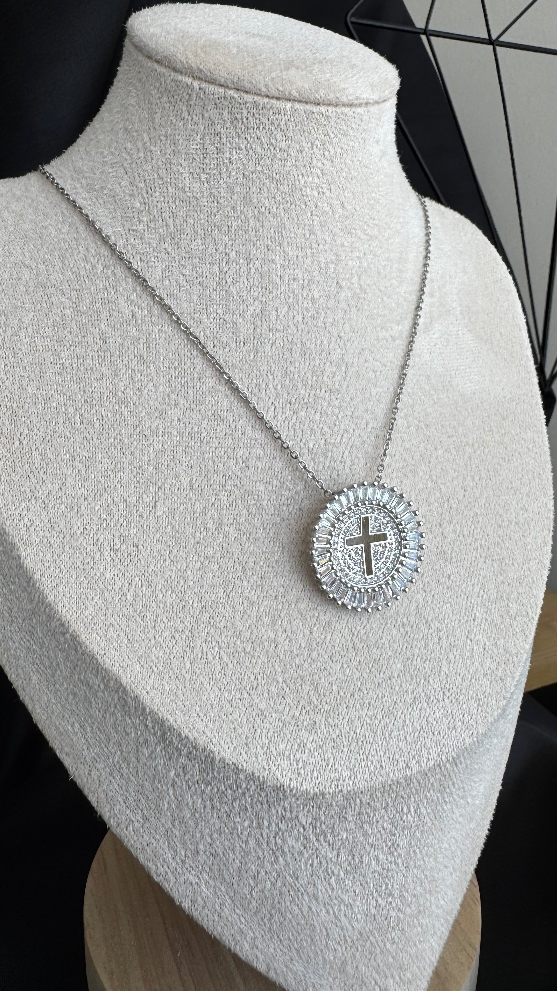 Colar Cruz Cravejado com Zircônias Banho Ródio Branco