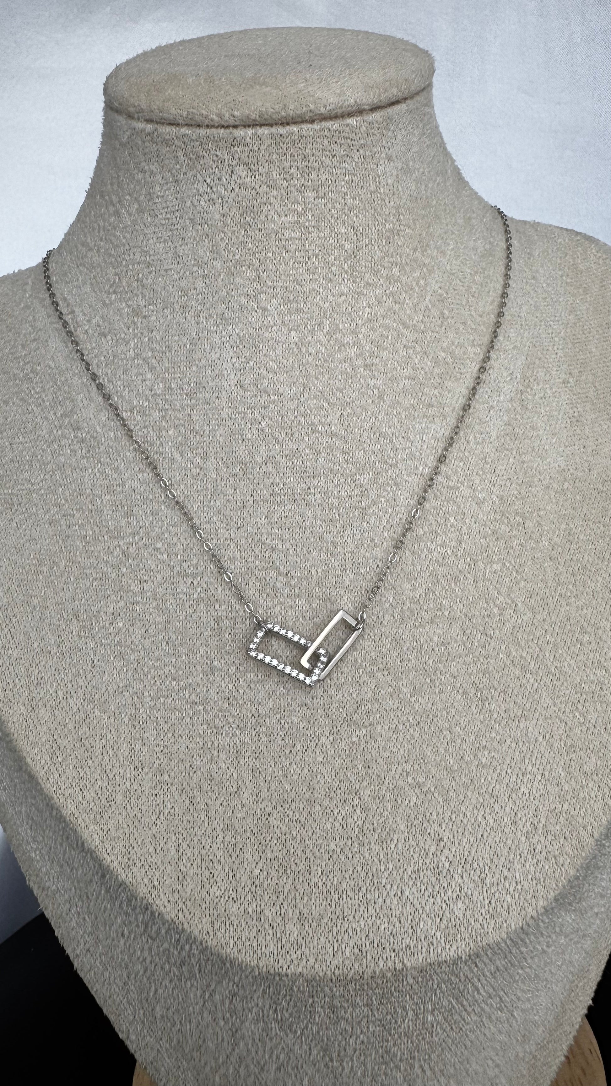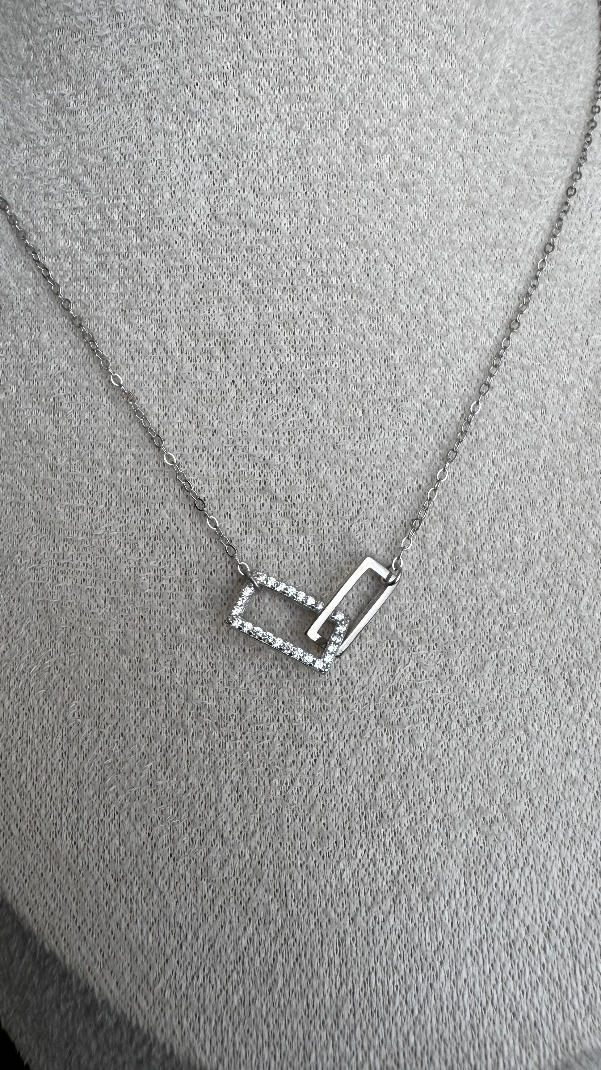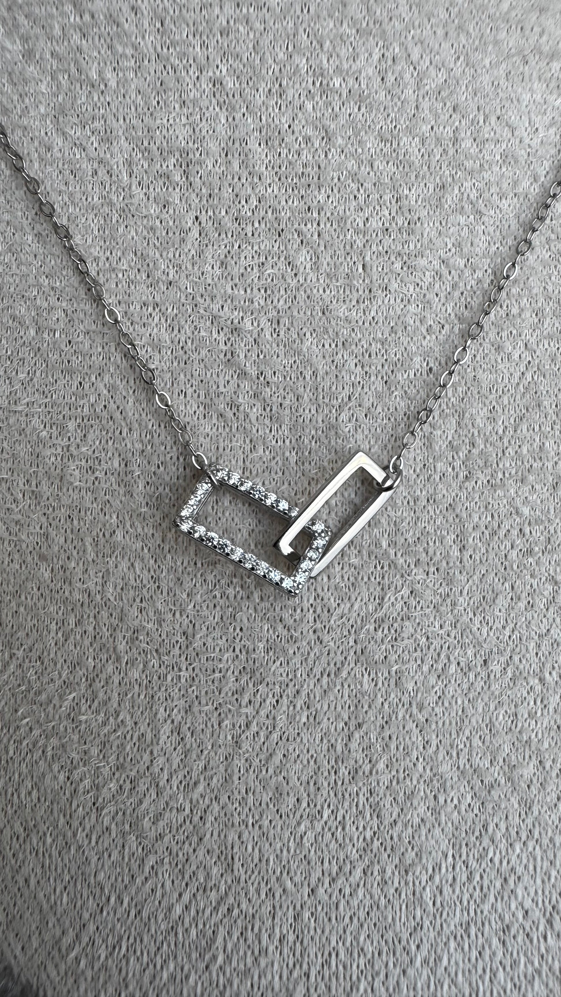 Colar Elos Retangulares Com Zirconias PRATA 925