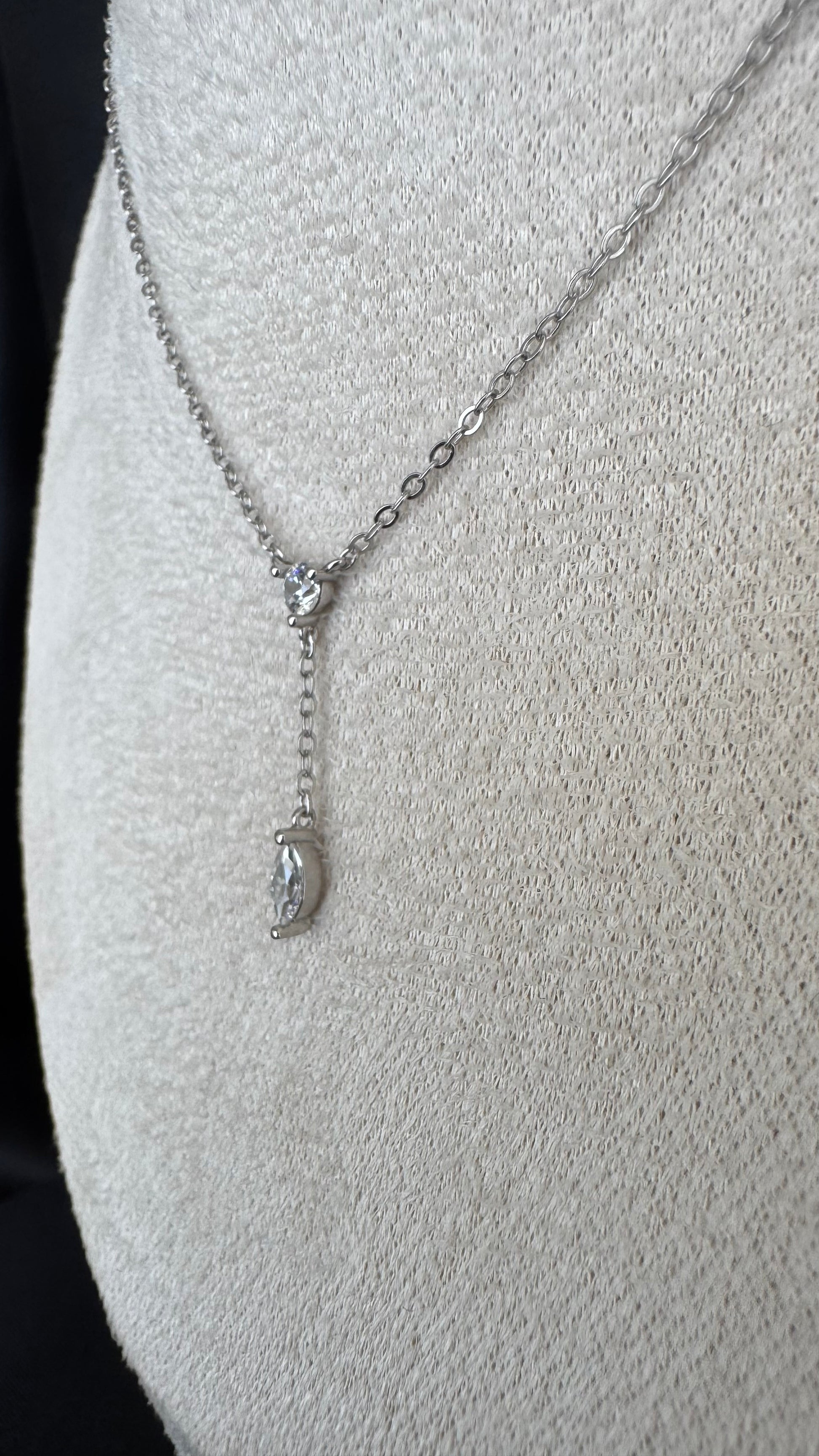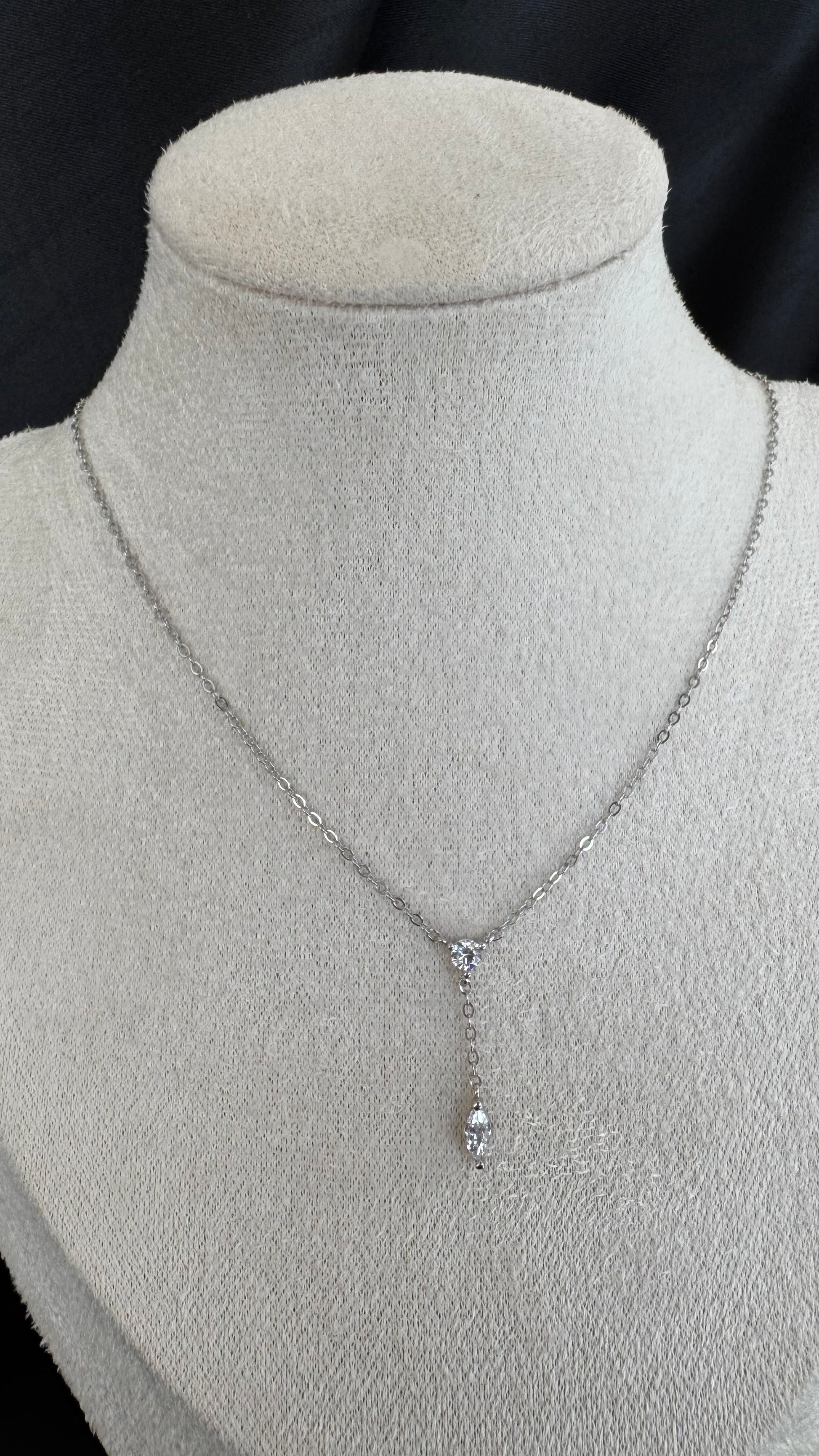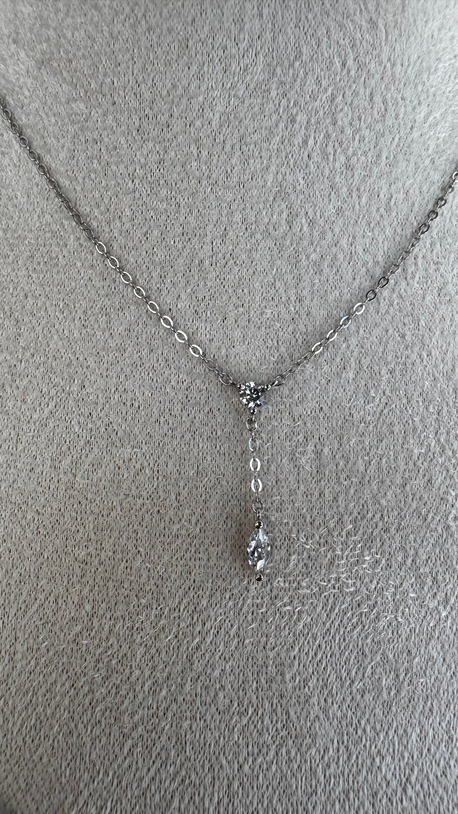 Colar Gravatinha Com Zircônias no banho de Ródio Branco