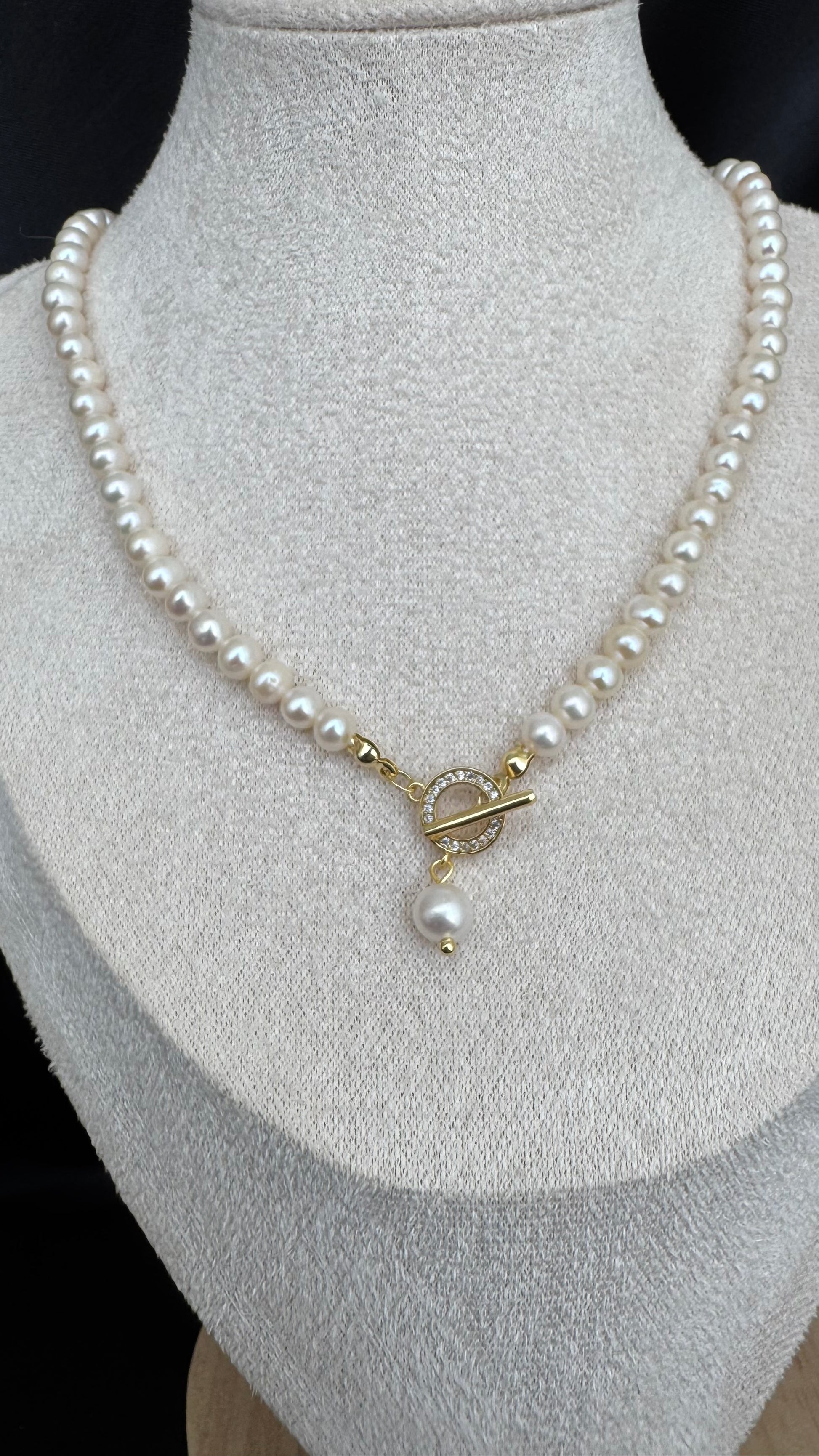 Colar Pérolas Pequenas com fecho encaixe e Zircônias